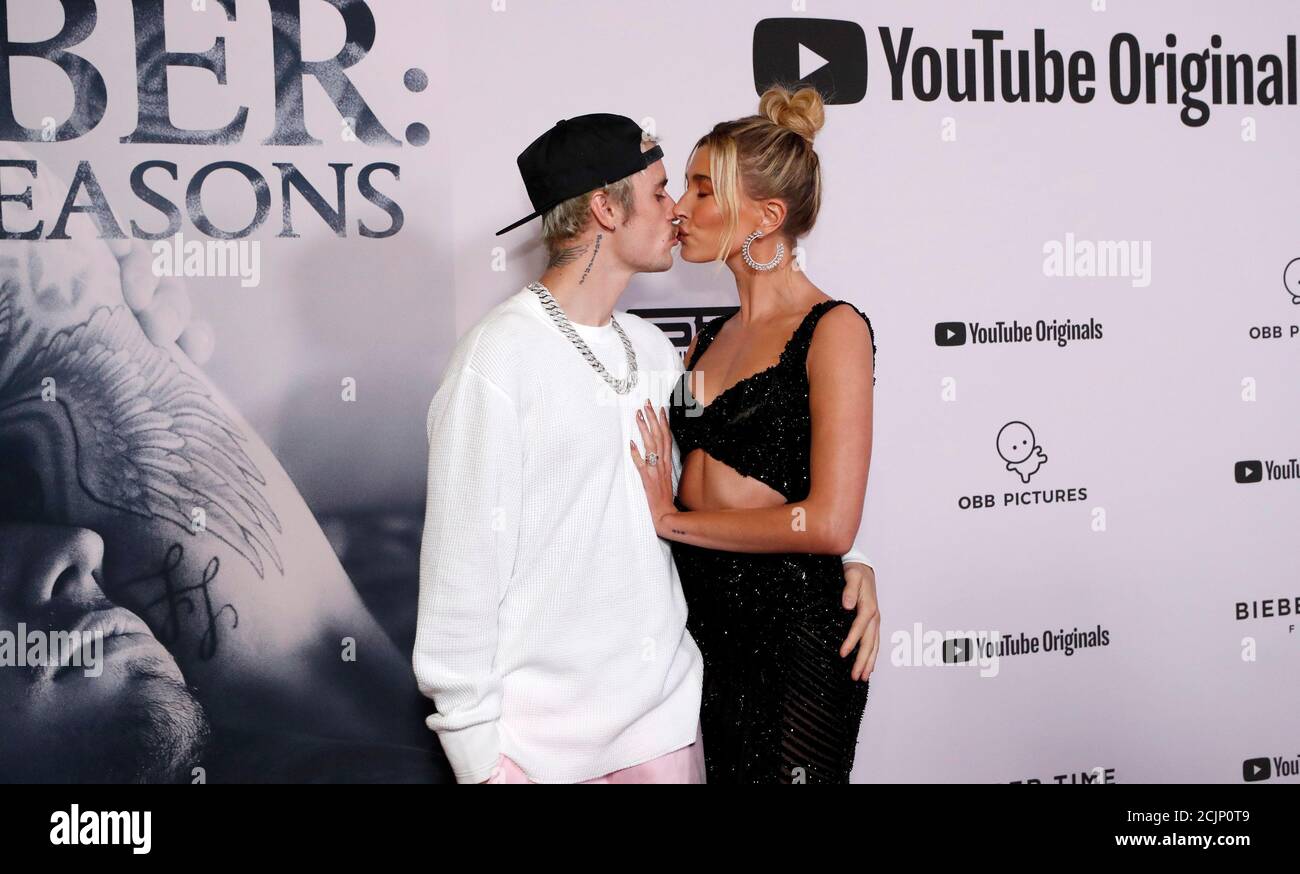 Singer Justin Bieber And His Wife Hailey Baldwin Kiss At The Premiere For The Documentary Television